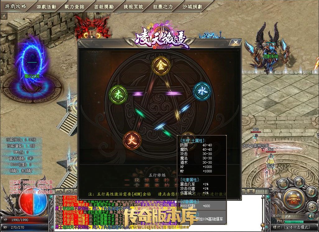 (开区2小时内消费满500W金钻,魔界之城可以免费领取3倍切割玉佩)