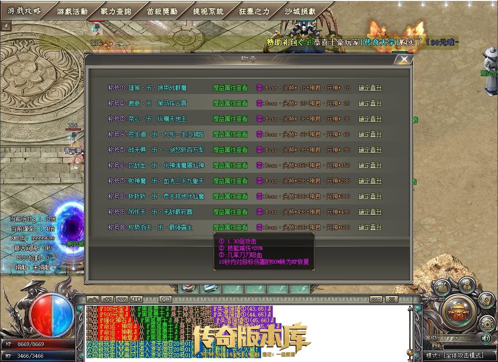 提现、开启狂暴、沙城捐献、玩家交易、购买时装(终极时装98元)、购买30元赞助礼包(无需非要购买,自行考虑)